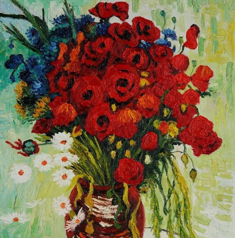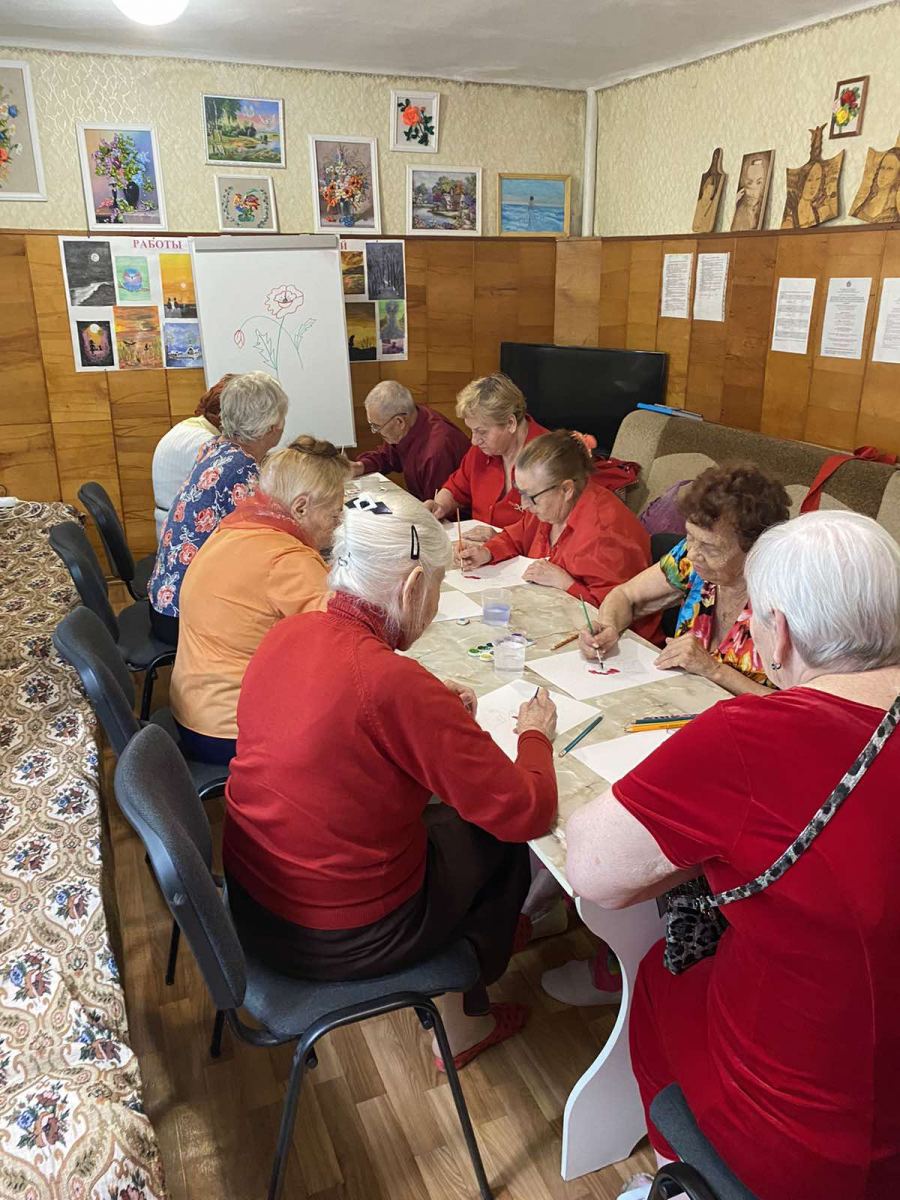 Пожилые граждане выбрали свой символ красного цвета – цветок мак. Роскошный, яркий, алый мак в персидской культуре считался символом радости и вечной любви. Посетители отделения с удовольствием рисовали цветок, а также вдохновившись картиной Винсента Ван Гога «Ваза с васильками и маками» (1890) фантазировали собственные компоненты рисунка.