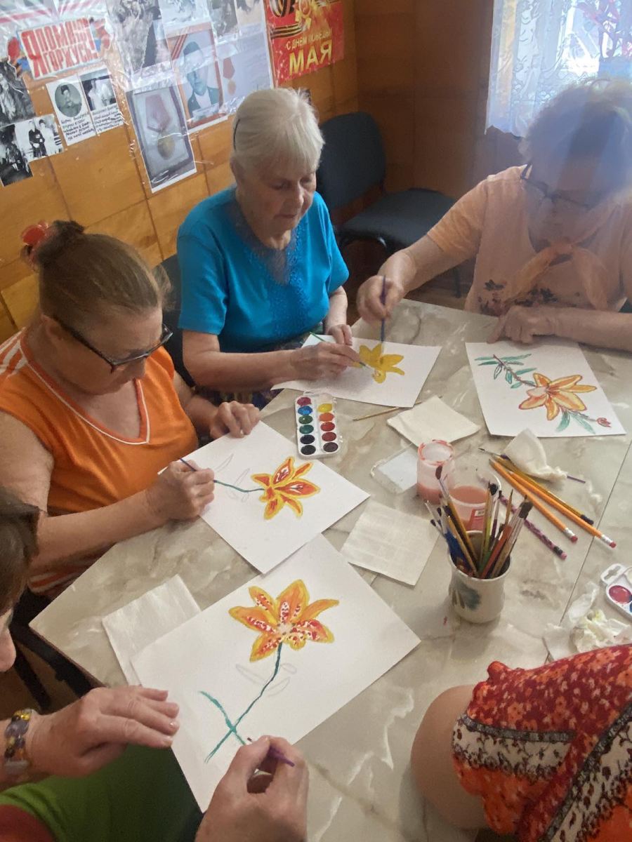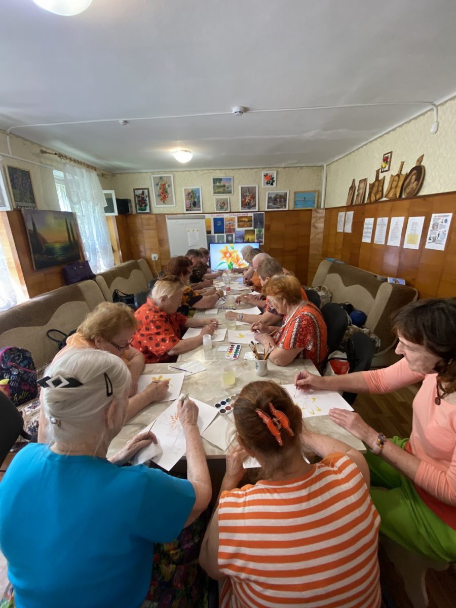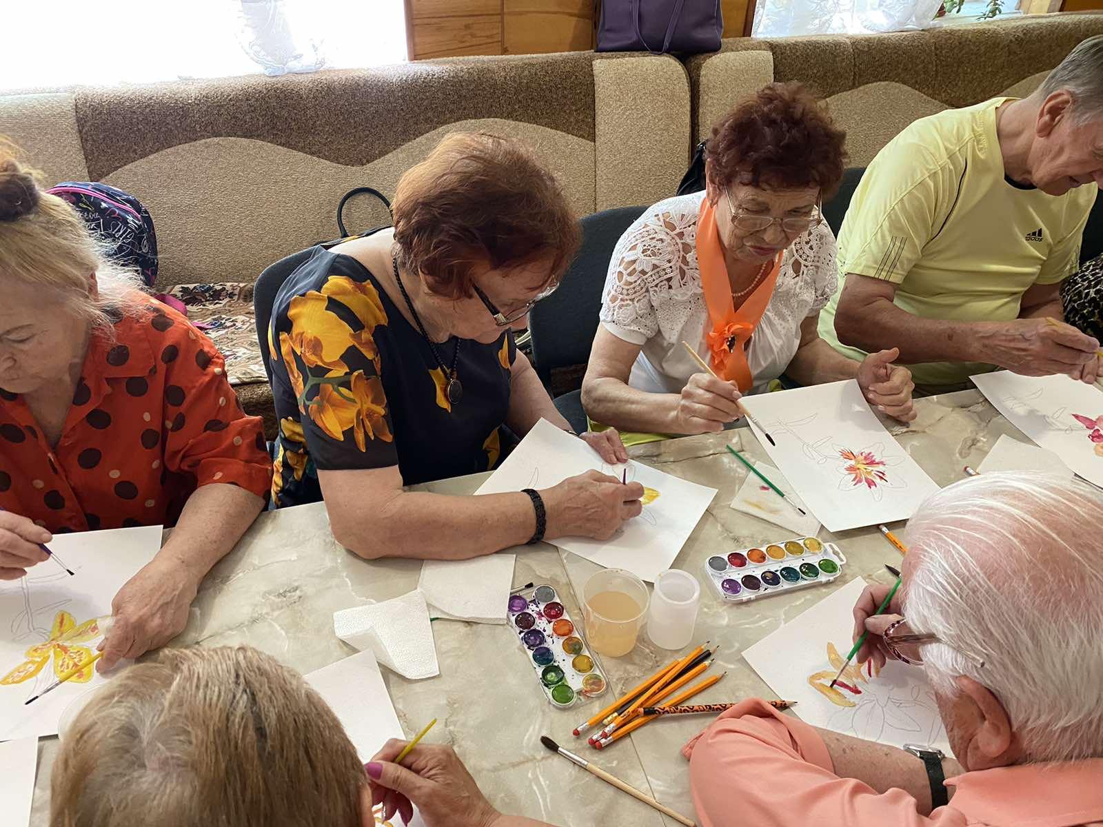 Арт-терапия для пожилых людей — способ поддержания интереса к жизни, вовлеченности и положительного настроя посредством творчества. Групповая арт- терапия представляет собой командную работу, что улучшает коммуникативные навыки. В таком возрасте нехватка общения ощущается острее всего. Во время разговоров с единомышленниками пожилые люди испытывают душевный подъем, радость и воодушевление. Рисование – отличный способ борьбы со стрессом и нервным напряжением. Происходит тренировка памяти, мелкой моторики. Параллельно с рисованием посетители отделения прослушивали специальные расслабляющие музыкальные произведения.