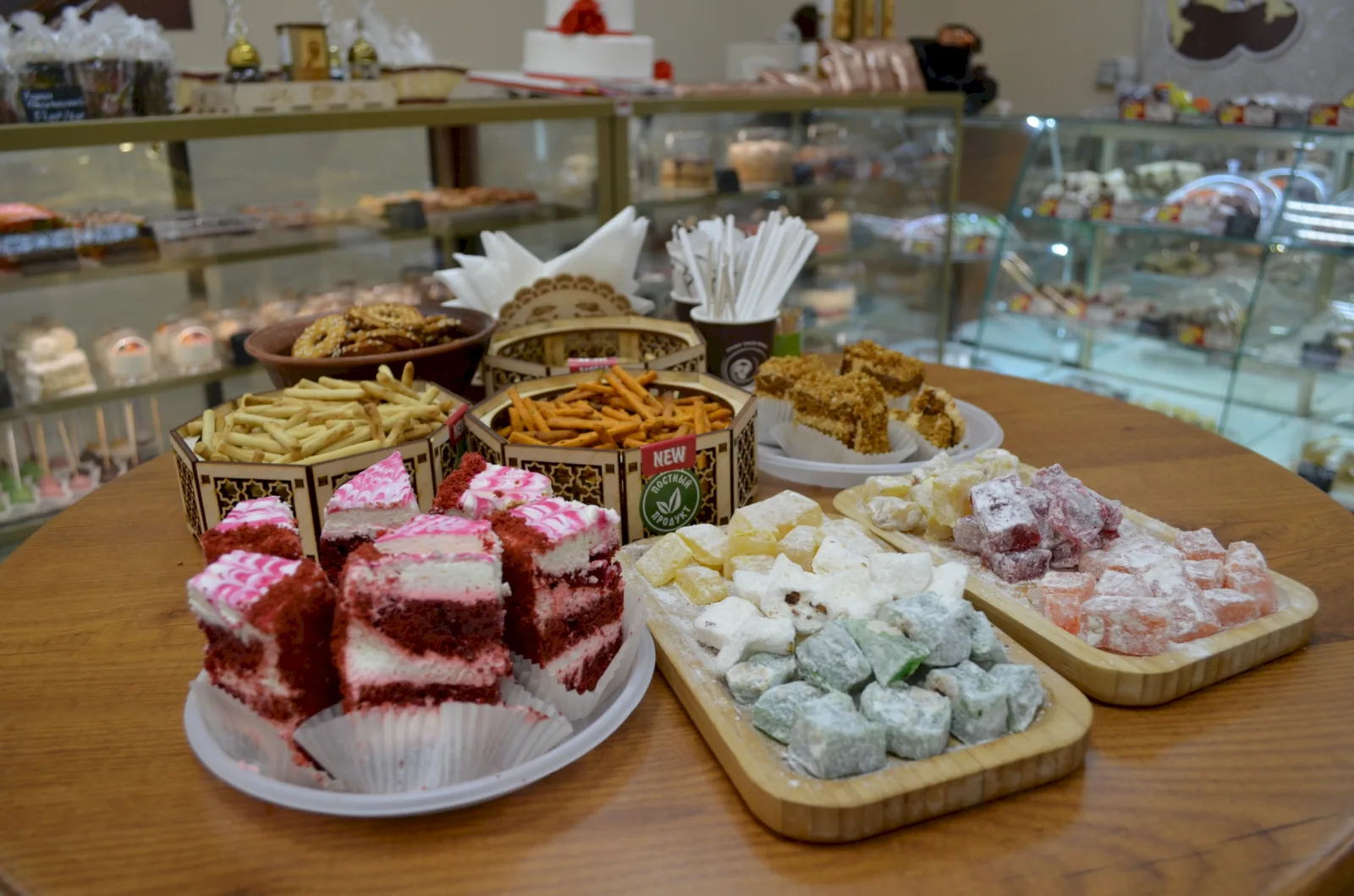 Продолжая гастрономическую экскурсию в сладкую жизнь, посетители увидели цеха по производству сахарного, затяжного и сдобного печенья, турецкой пахлавы, рахат-лукума и других восточных сладостей, а также цех по производству и упаковке чая.