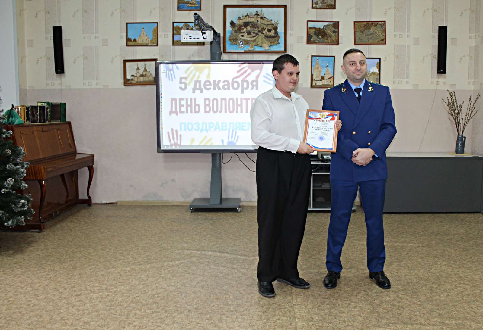 В начале концертной программы прокурор, советник юстиции Киевского района г. Симферополя Андрей Александрович Семерок, в честь празднования Международного дня волонтеров, вручил грамоты и благодарности волонтёрам социально – реабилитационного отделения инвалидов — Гордиенко Алексею, Илиенко Александру, Соколовой Ксении, Шульге Ольге и Микляеву Алексею, за вклад и участие в волонтерском движении, активную гражданскую позицию, ответственность и благородную миссию.