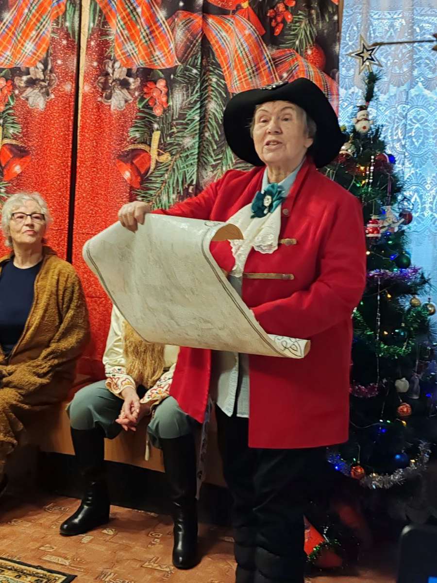 В социально-реабилитационном отделении граждан пожилого возраста и инвалидов №4 (ул. Аральская, 71/88) такое чудо произошло. Получатели социальных услуг с помощью театрализованного представления, самобытных костюмов, голосового помощника Алисы и собственных талантов смогли попутешествовать во времени. Вначале все присутствующие погрузились в далекий VI век, к истокам язычества, где узнали, в каких богов верили наши предки и каких нечистых духов боялись. Далее путешественники переместились в X век, увидели, как произошло Крещение Руси князем Владимиром. Затем погрузились в XVI и прочувствовали, как на Руси праздновали Рождество с колядками и веселыми играми. Следующая остановка – петровская эпоха, в которую царем был издан указ о праздновании Нового года по новому стилю. В промежутках между остановками были проведены викторина о словах-старославянизмах, которые мы используем в современной речи и интерактивная игра о суевериях, что способствовало повышению уровня знаний и развитию когнитивных способностей. После был совершен скачок в будущее – в XXII век. Инопланетные гости вышли на контакт с землянами и передали свои поздравления. И, наконец, гости и участники остановились в самом лучшем времени – в своем советском детстве, где пахнет елкой и мандаринами, и где тепло и беззаботно.
