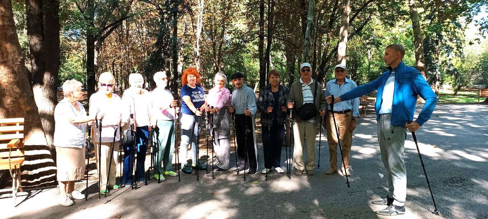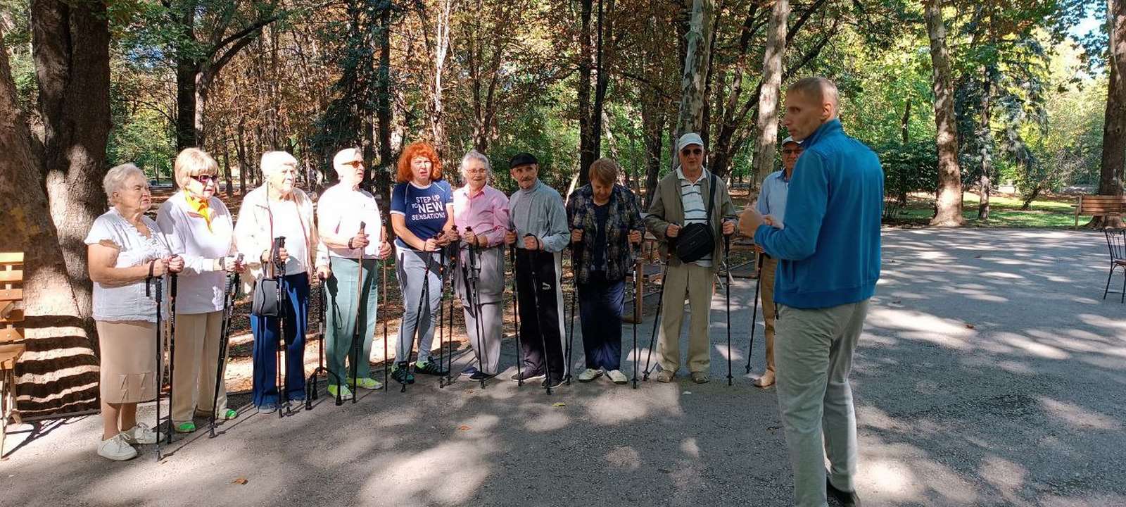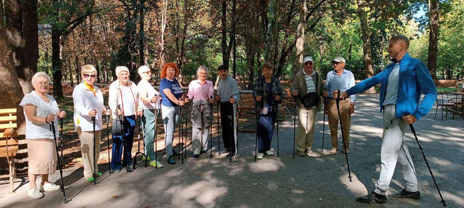 В рамках программы «Активное долголетие» спортсмены «серебряного» возраста продолжают свои тренировки по скандинавской ходьбе. После летнего отдыха группа вновь собралась, чтобы приступить к своим занятиям.