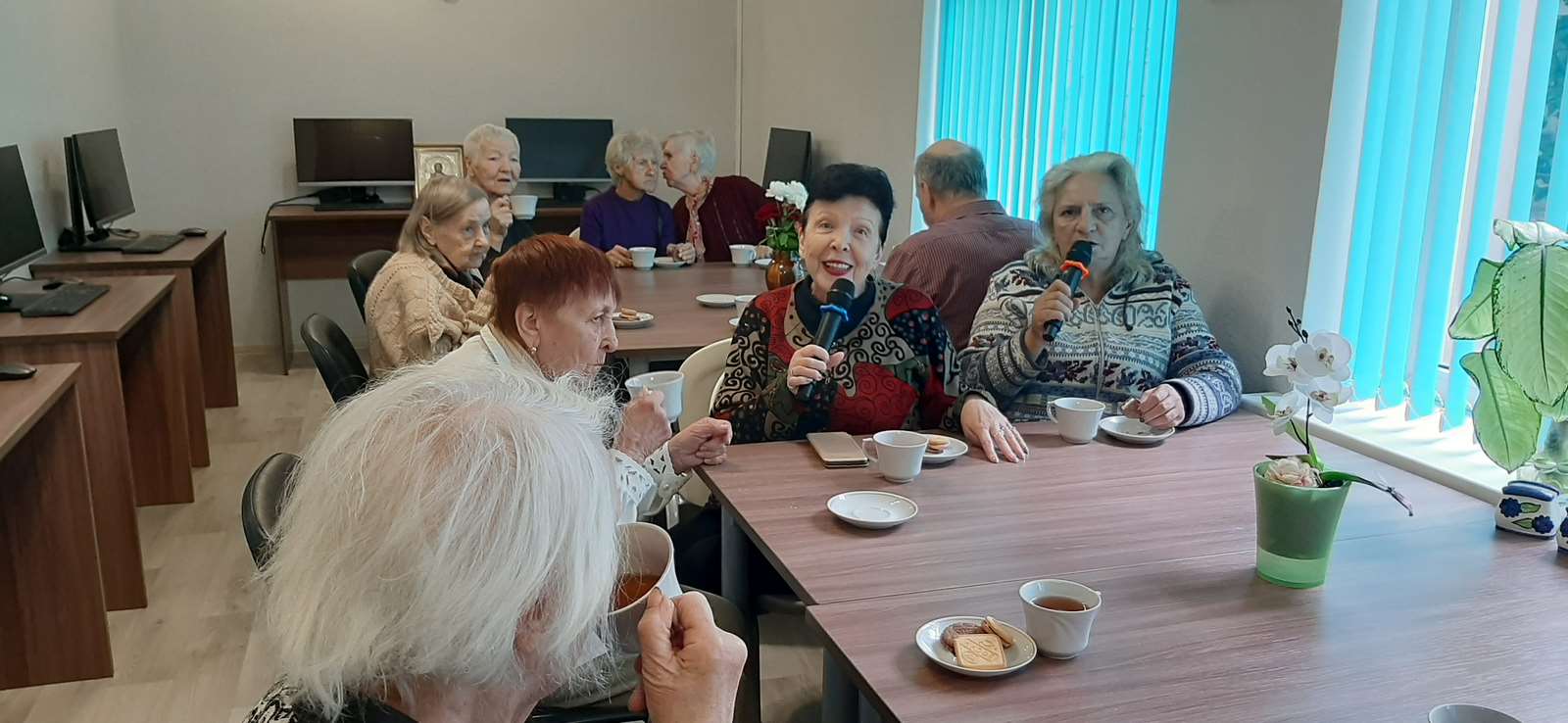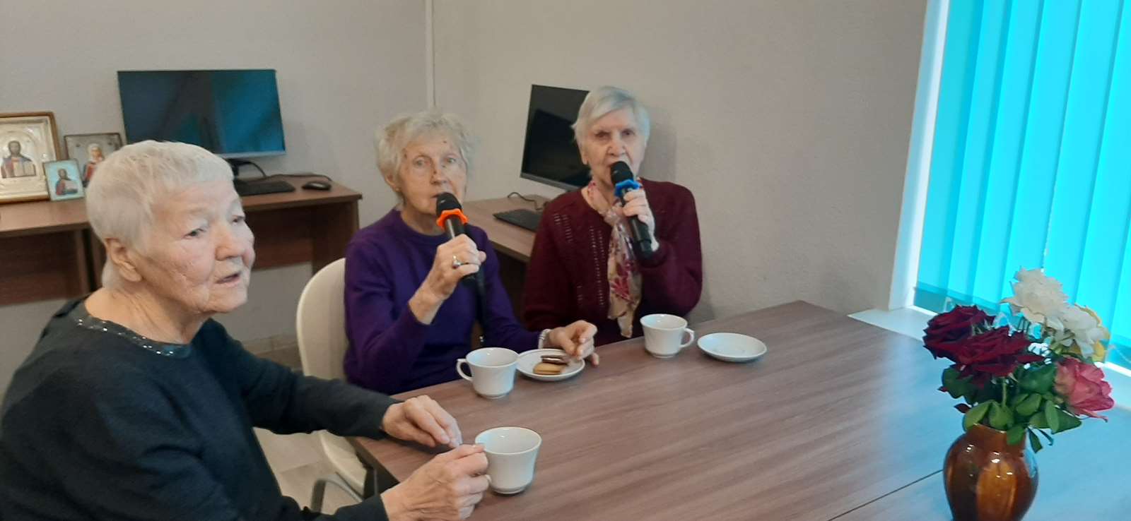 А какое же чаепитие без застольных песен? Дружно исполнили: «А где мне взять такую песню?», «Виновата ли я?», «Рябина кудрявая», «Посидим по-хорошему», «От улыбки» и другие душевные песни.