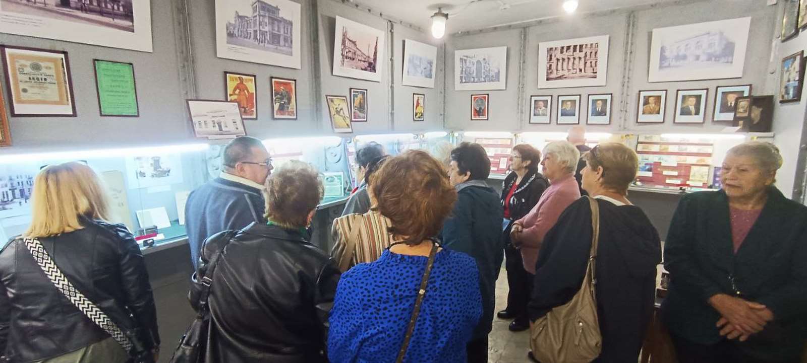 Вторая часть экскурсии прошла по экспозиции «История финансового дела и денежного обращения в Симферополе в конце 19 – начала 21 вв.». Уникальная выставка размещена в комнате-сейфе конца 19 века, которое использовалось как денежное хранилище. Экспонаты сейфовой комнаты – это дары симферопольских коллекционеров, жителей города, которые бережно хранили в домашних архивах сберегательные книжки царского времени, квитанции об оплате, разнообразные денежные знаки и так далее.
