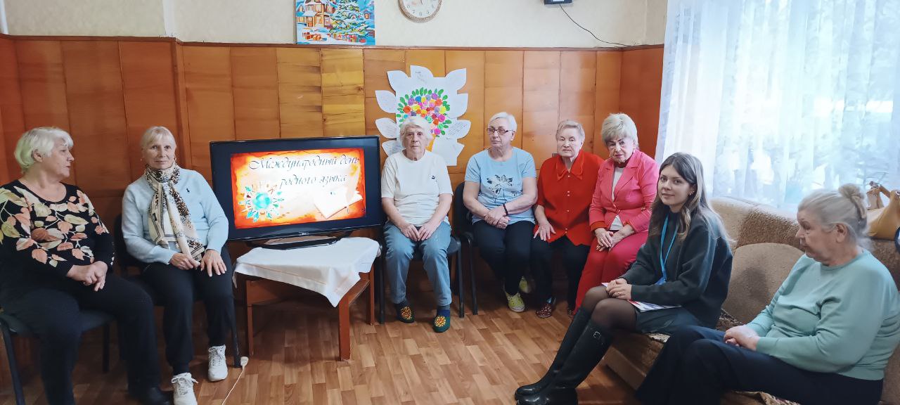 К Международному Дню родного языка в рамках Года единства народов России, сотрудник Российского просветительского общества «Знание» провела для получателей социальных услуг социально-реабилитационного отделения граждан пожилого возраста и инвалидов №2 (ул. Гайдара, 4а) лекцию-игру «Живое слово родного языка».