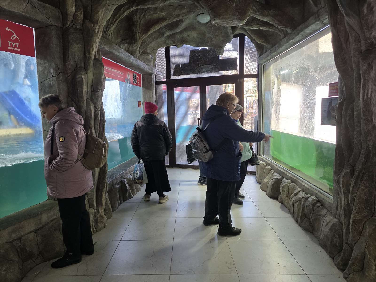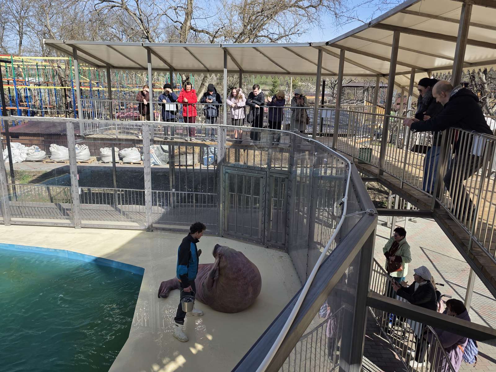 Этот день порадовал пожилых людей и молодых людей с инвалидностью не только хорошей погодой. Замечательные животные, обитатели зоопарка, встретили гостей приветливо и дружелюбно. Посетители увидели кормление выдр и пингвинов, чистку зубов бегемота, представление артистичного моржа Солтана, покормили антилопу, оленей, верблюда и зебру. Развлеклись, глядя на общительных обезьян и рассмотрели пеликанов и серых журавлей, которые свободно гуляют по территории и контактируют с гостями. Получатели социальных услуг получили массу удовольствия и радости от общения с животным миром. Впечатлений от посещения Бахчисарайского Парка миниатюр хватит еще на долгое время.