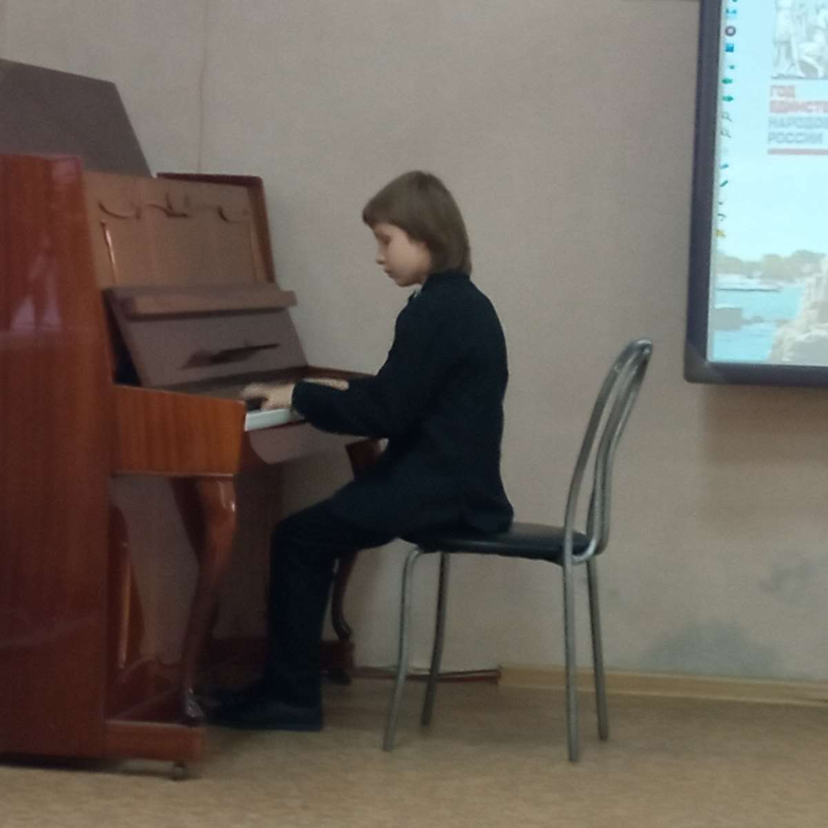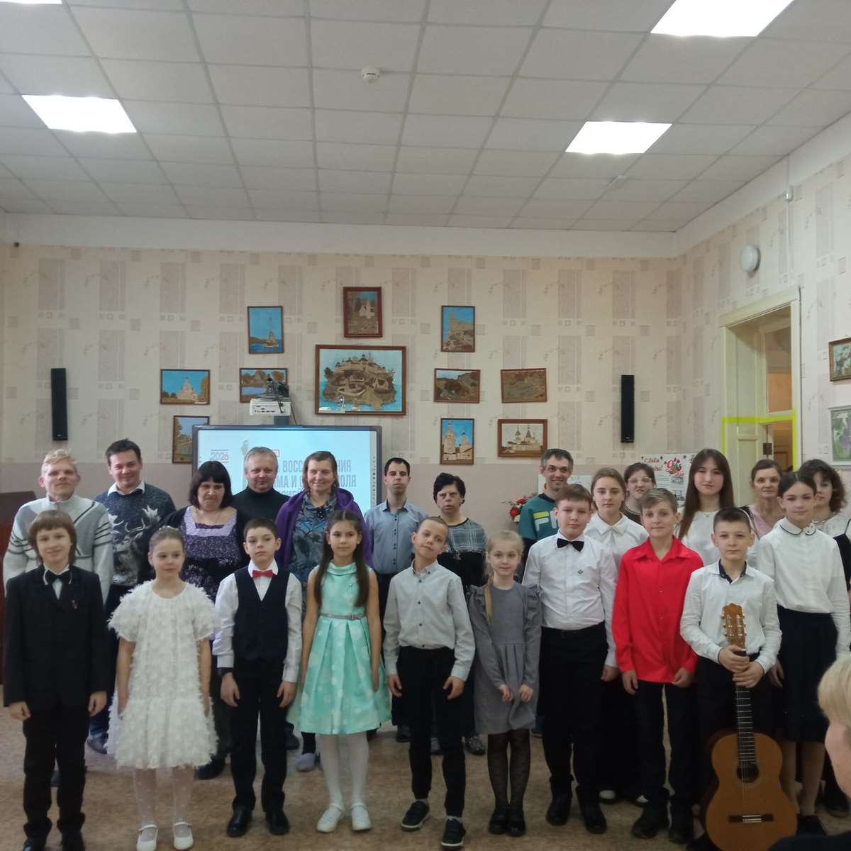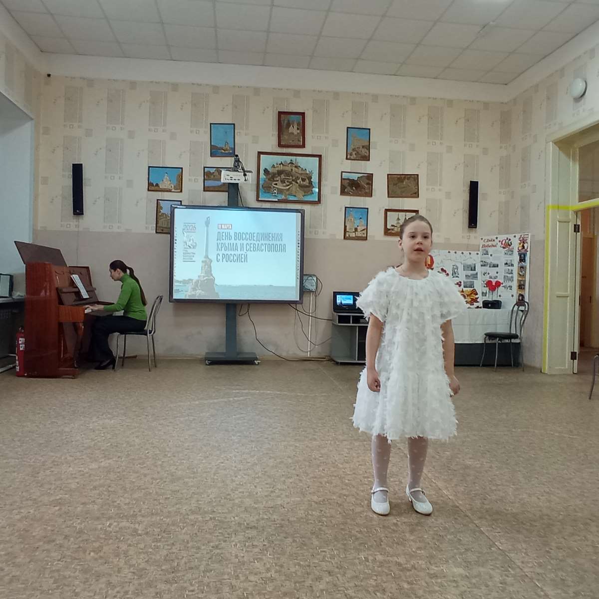 В отделении ученики музыкальной школы — дорогие гости. Поддержать ребят пришли их родители и друзья. Ведущая концерта Волошина А.В. открывая концертные выступления, напомнила о событиях 2014 года, важных моментах истории полуострова, его достижениях, поделилась со зрителями удивительными фактами о великой России.