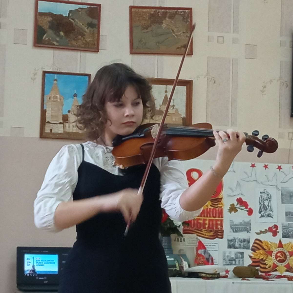 В концерте приняли участие следующие ученики музыкальной школы: Передеренко А., Журавлёва А., Маркив М., Рожков Д., Смаилова Ф., Ситников М., Воробьёв В., Шереметьева А., Шостак А., Кобылянская С., Онишкевич Д., Сагоконь А., Гуртовая В., Горохов Д., Микерина В. Были исполнены музыкальные произведения известных композиторов Г. Свиридова, Э.Грига, Д. Кабалевского и других на фортепиано, скрипке и гитаре. Были представлеы вокальные номера, среди них — народные песни, любимые и узнаваемые, например, «Калинка» в обработке Б. Александрова.