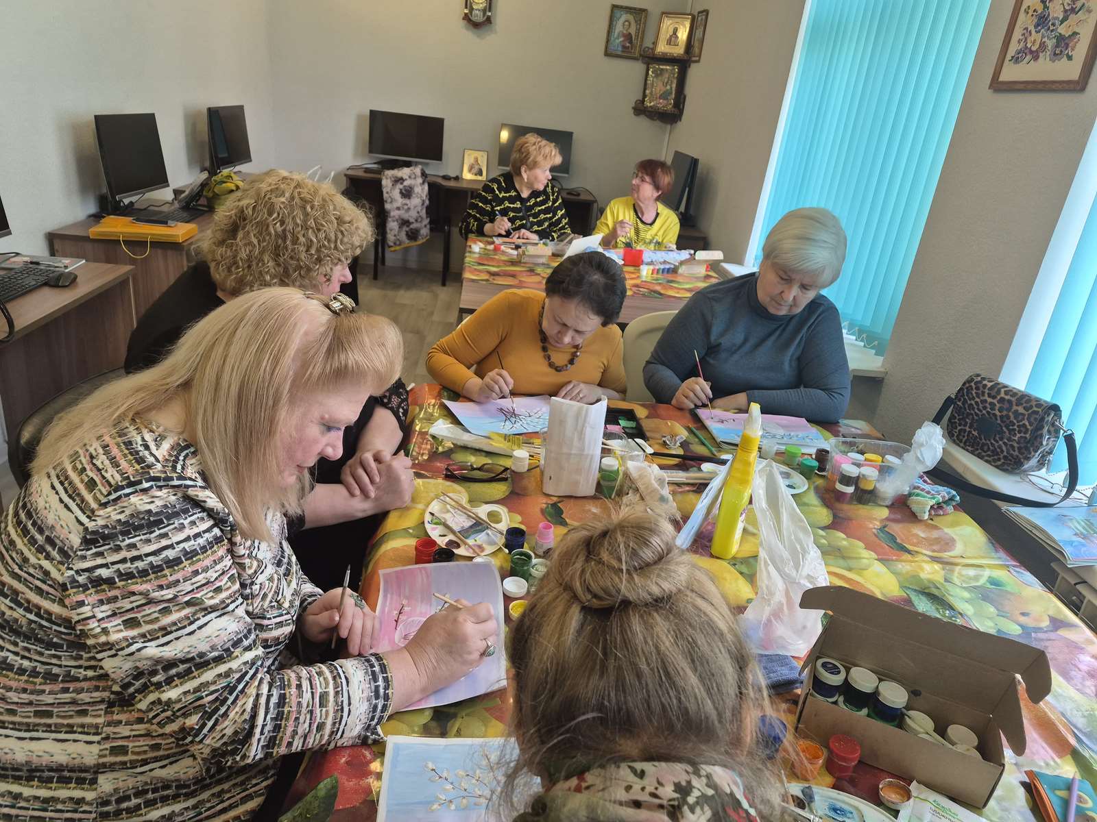 19 марта 2026 года в рамках программы «Активное долголетие» состоялось очередное занятие кружка по правополушарному рисованию. Под руководством Натальи Домасевич, участники погрузились в атмосферу приближающегося Вербного воскресенья, создавая на холсте нежные образы этого светлого праздника.