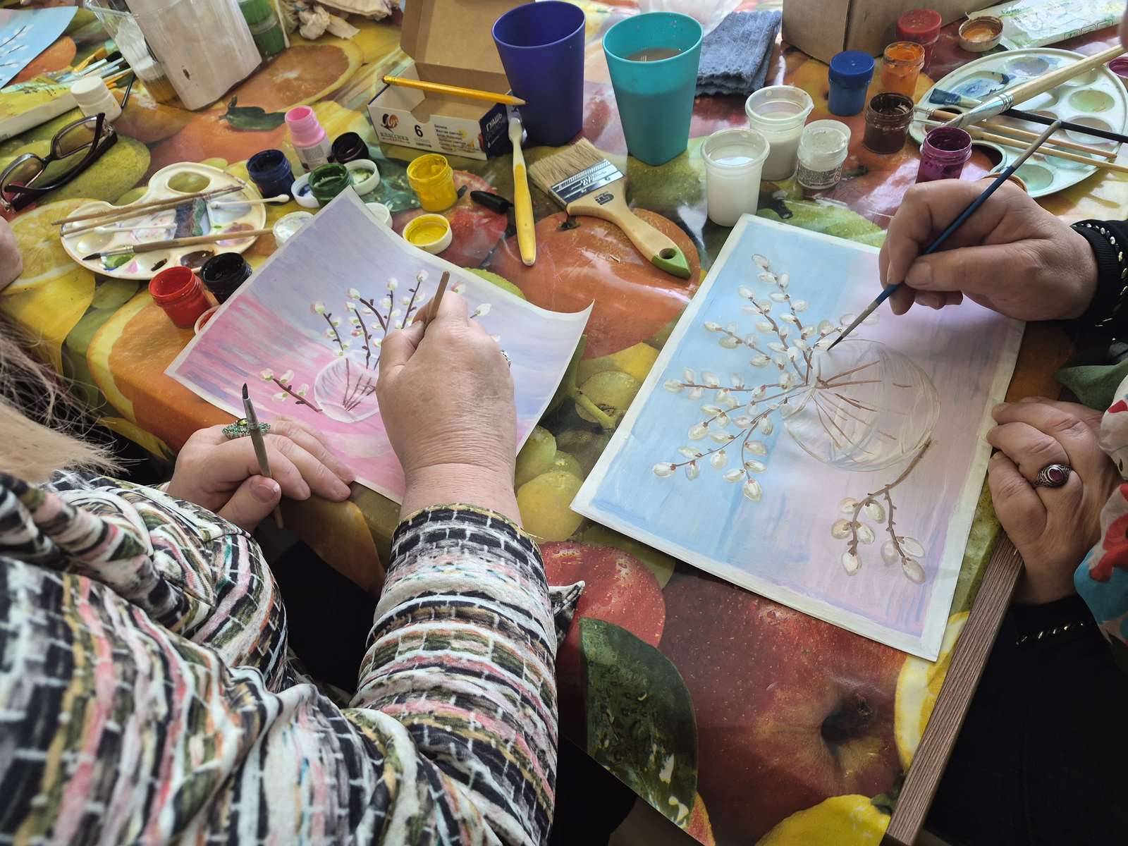 19 марта 2026 года в рамках программы «Активное долголетие» состоялось очередное занятие кружка по правополушарному рисованию. Под руководством Натальи Домасевич, участники погрузились в атмосферу приближающегося Вербного воскресенья, создавая на холсте нежные образы этого светлого праздника.
