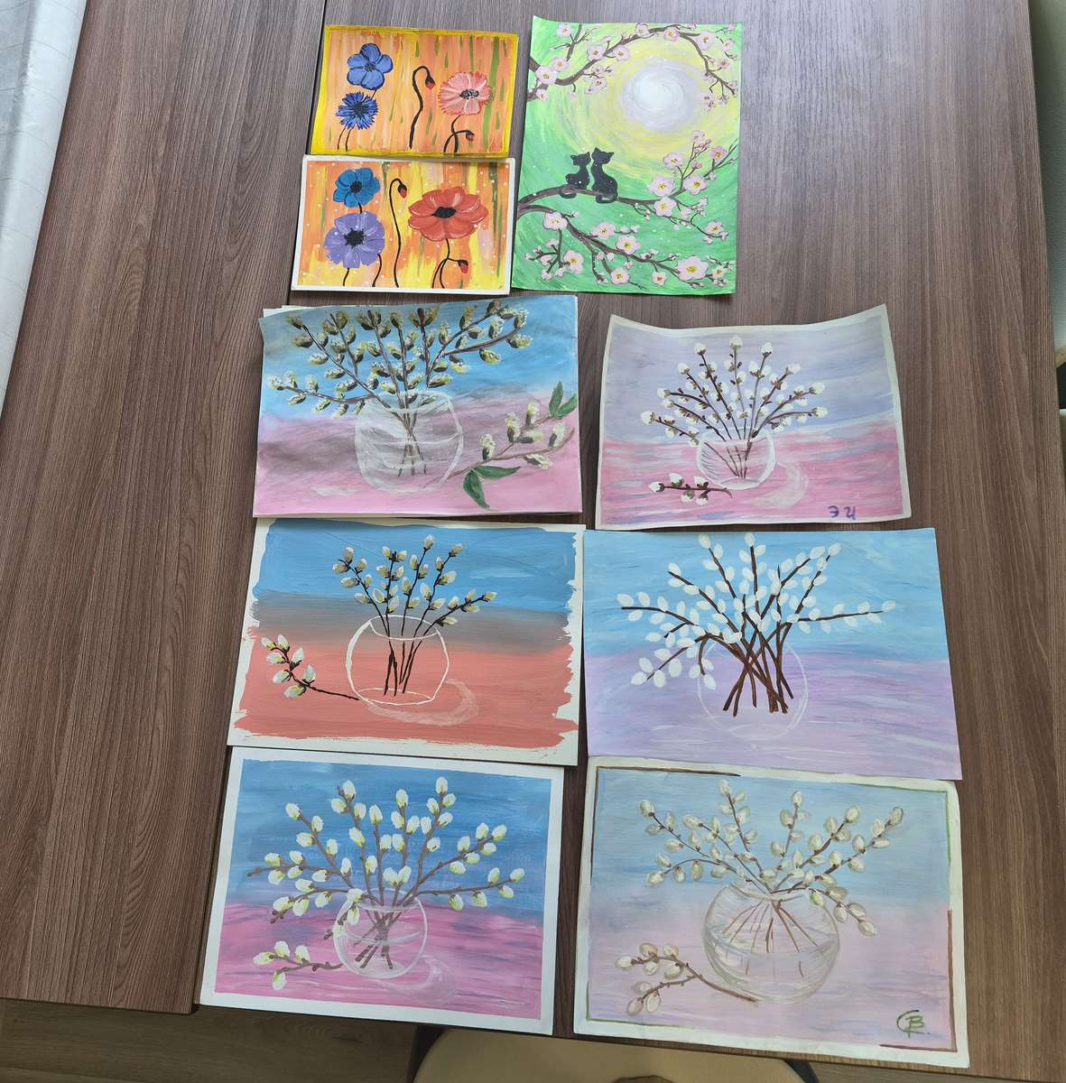 Участники кружка с удовольствием воплощали этот образ на своих картинах, передавая нежность и хрупкость вербных веточек, их пушистую текстуру и ощущение весеннего пробуждения. Занятие стало не только возможностью для творческого самовыражения, но и поводом для размышлений о традициях, символах и глубоком смысле праздника Вербного воскресенья.